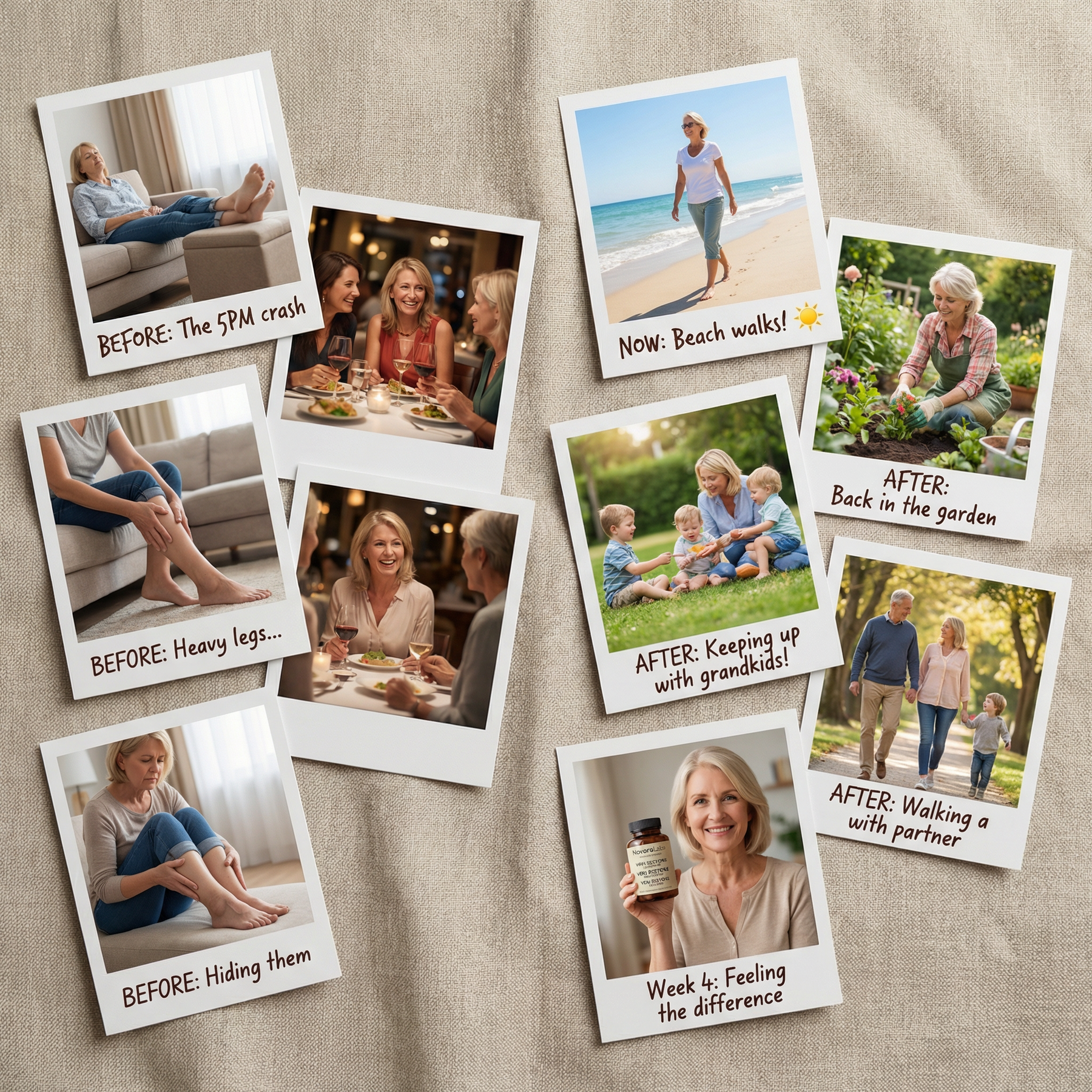 - Week 6-8: Full transformation—lighter legs throughout the day